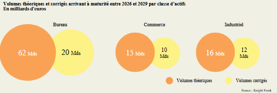 Knight Frank estime qu’environ 90 milliards d’euros d’actifs (≈ 67 % de bureaux, 16 % de commerce, 18 % d’industriel) pourraient théoriquement arriver à maturité entre 2026 et 2029, dont seulement 41 à 42 milliards d‘euros seraient effectivement échangeables dans les conditions actuelles du marché. Ce constat traduit un environnement devenu ultra sélectif, où la valeur d’un actif repose autant sur sa performance financière que sur sa capacité à être cédé dans de bonnes conditions. Les SCPI concentrent une large part des volumes arrivant à maturité mais une part moindre des actifs effectivement cessibles, tandis que les foncières cotées et les fonds à gestion active montrent une capacité supérieure d’arbitrage et de repositionnement de leur portefeuille.